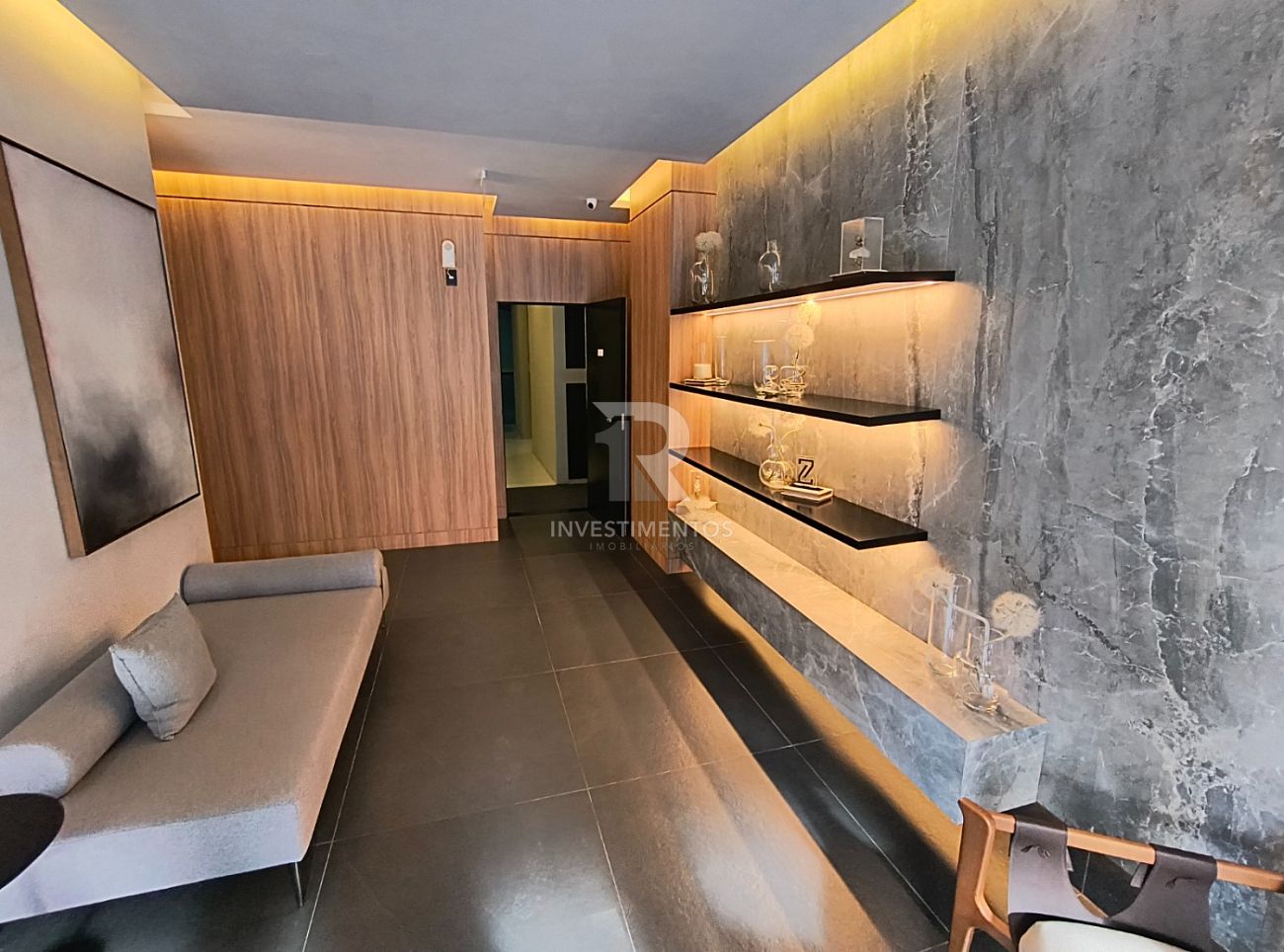Amplo living integrado, sacada com churrasqueira a carvão, lavabo e 02 vagas de garagem. Acabamento de alto padrão, com piso porcelanato, rebaixo em gesso e infraestrutura para split e água quente.