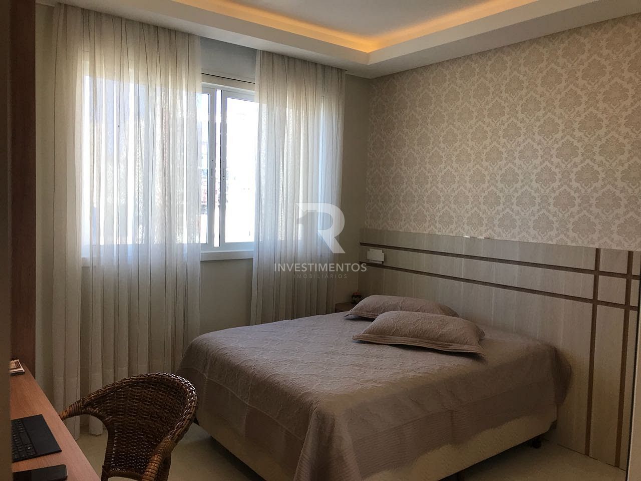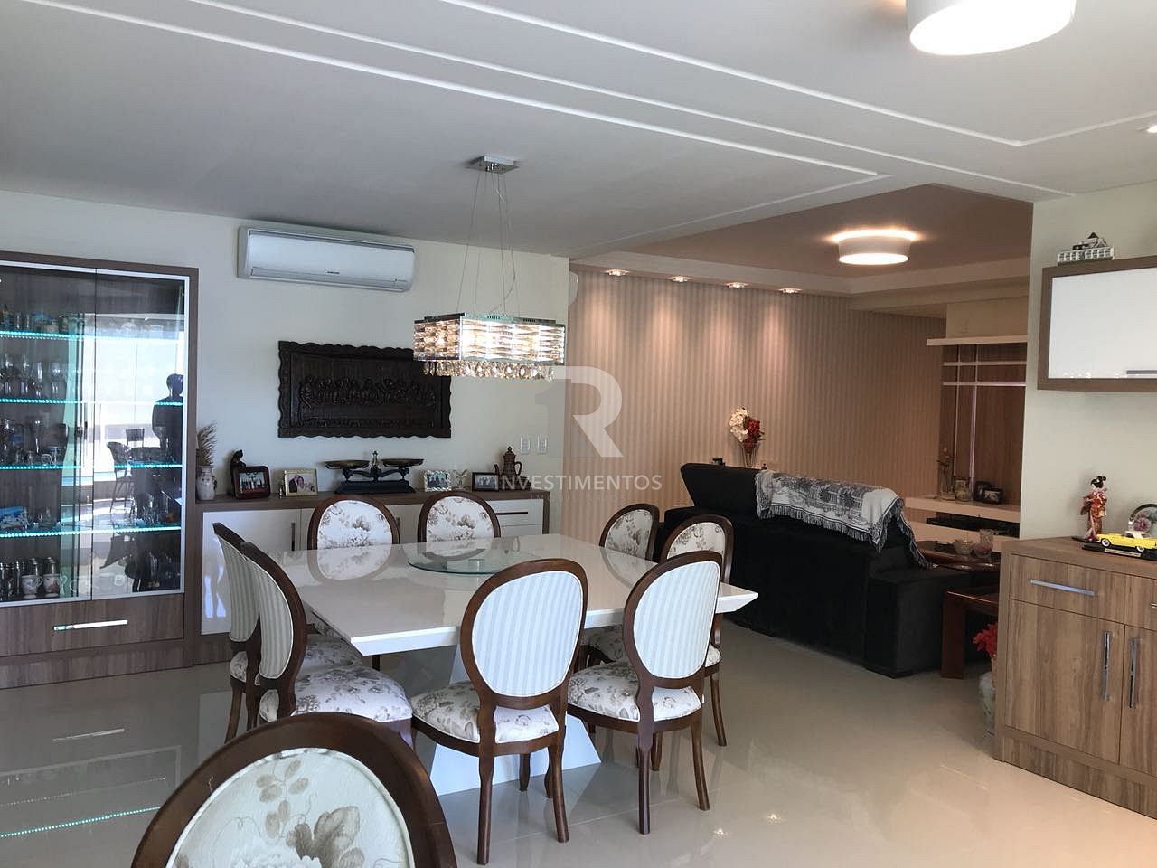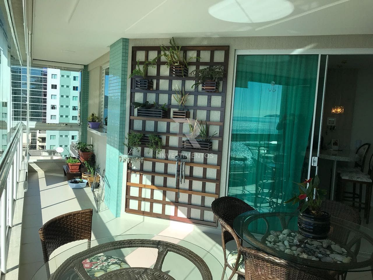 Apartamento espaçoso, com 4 suítes, 3 vagas de garagem, sacada com churrasqueira a carvão e vista permanente para o mar. Acabamentos em porcelanato, gesso rebaixado, ar-condicionado e living integrado.