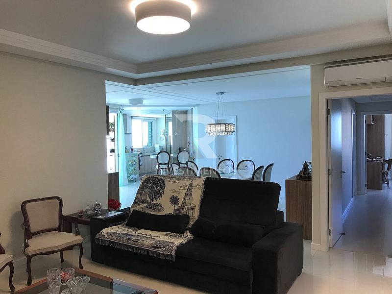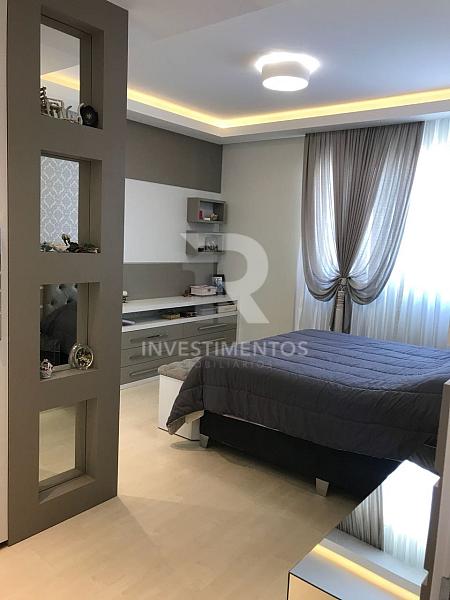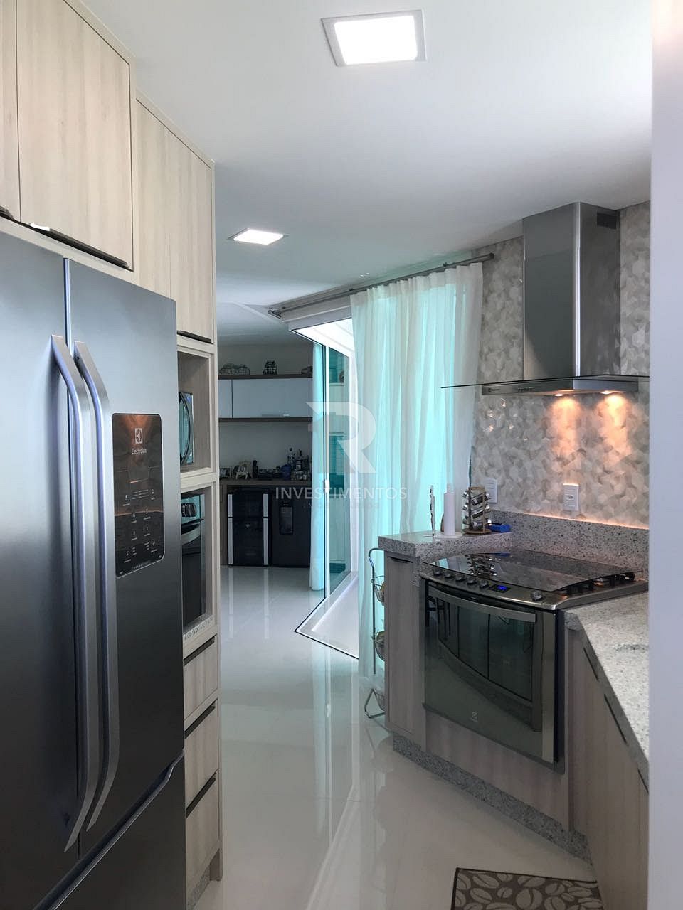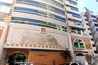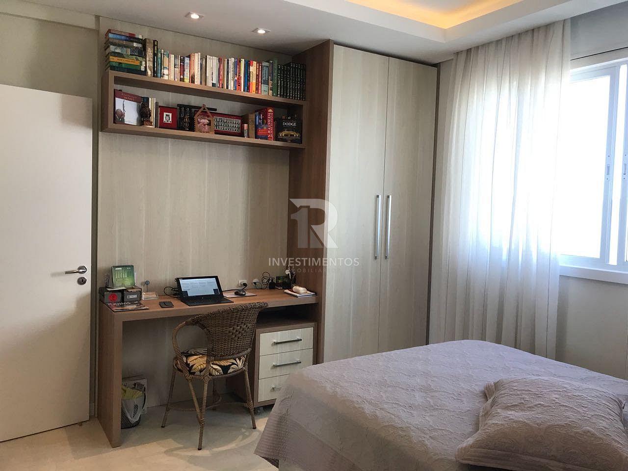 Apartamento espaçoso, com 4 suítes, 3 vagas de garagem, sacada com churrasqueira a carvão e vista permanente para o mar. Acabamentos em porcelanato, gesso rebaixado, ar-condicionado e living integrado.