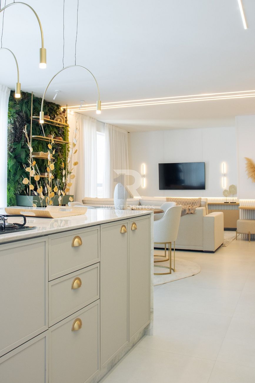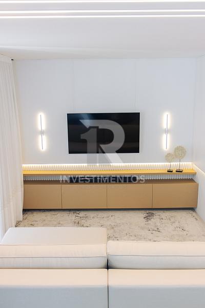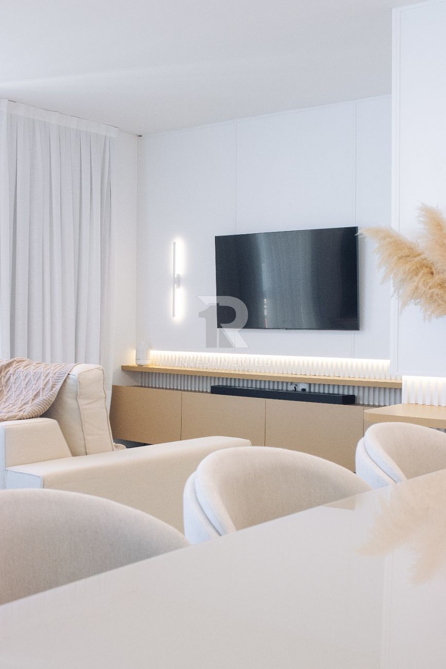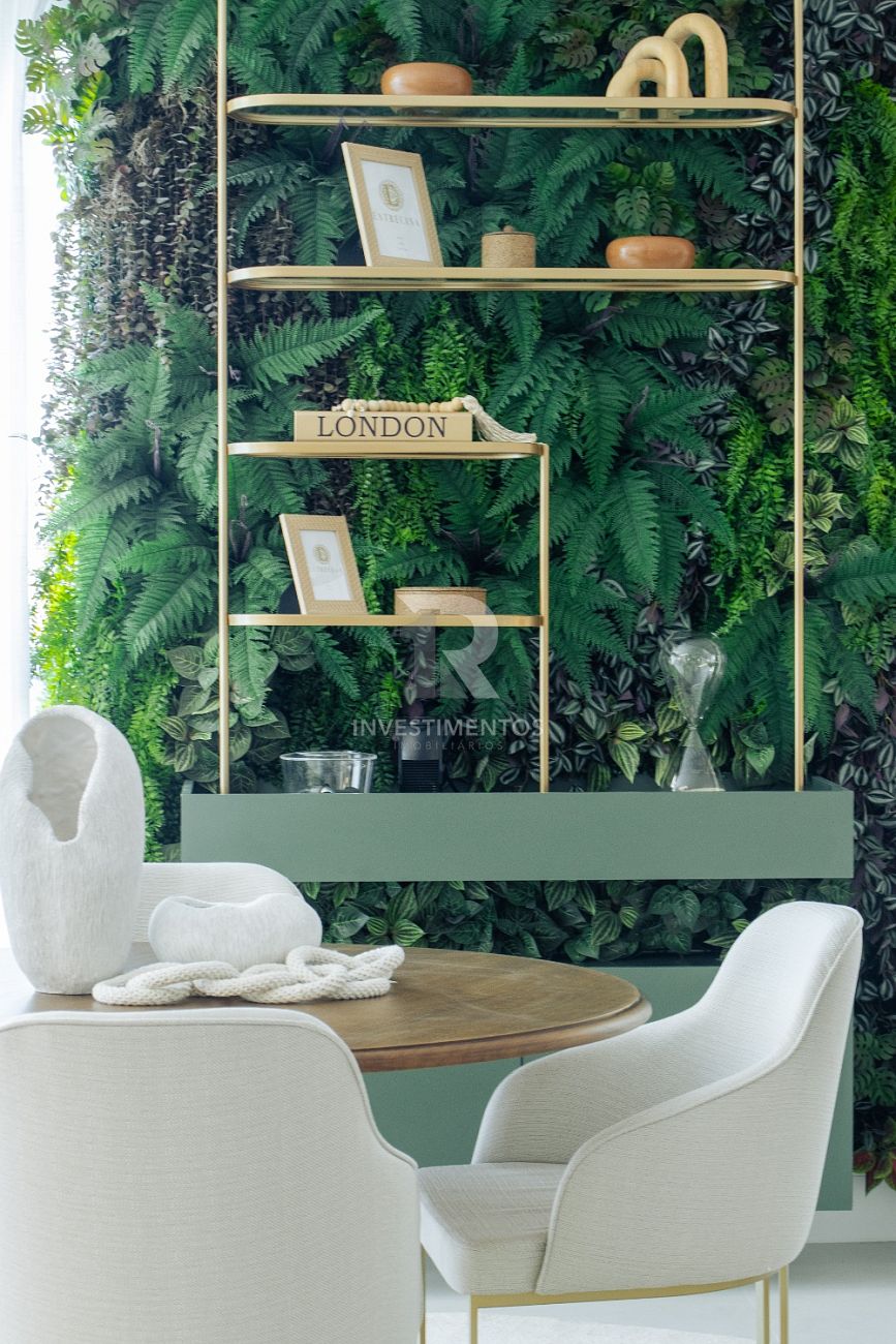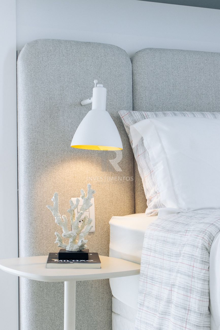 Com living integrado, lavabo, cozinha equipada, área de serviço e ampla sacada com churrasqueira a carvão. Acabamento de alto padrão com piso porcelanato, gesso, portas em laca branca, tubulação para água quente e ar-condicionado Split.