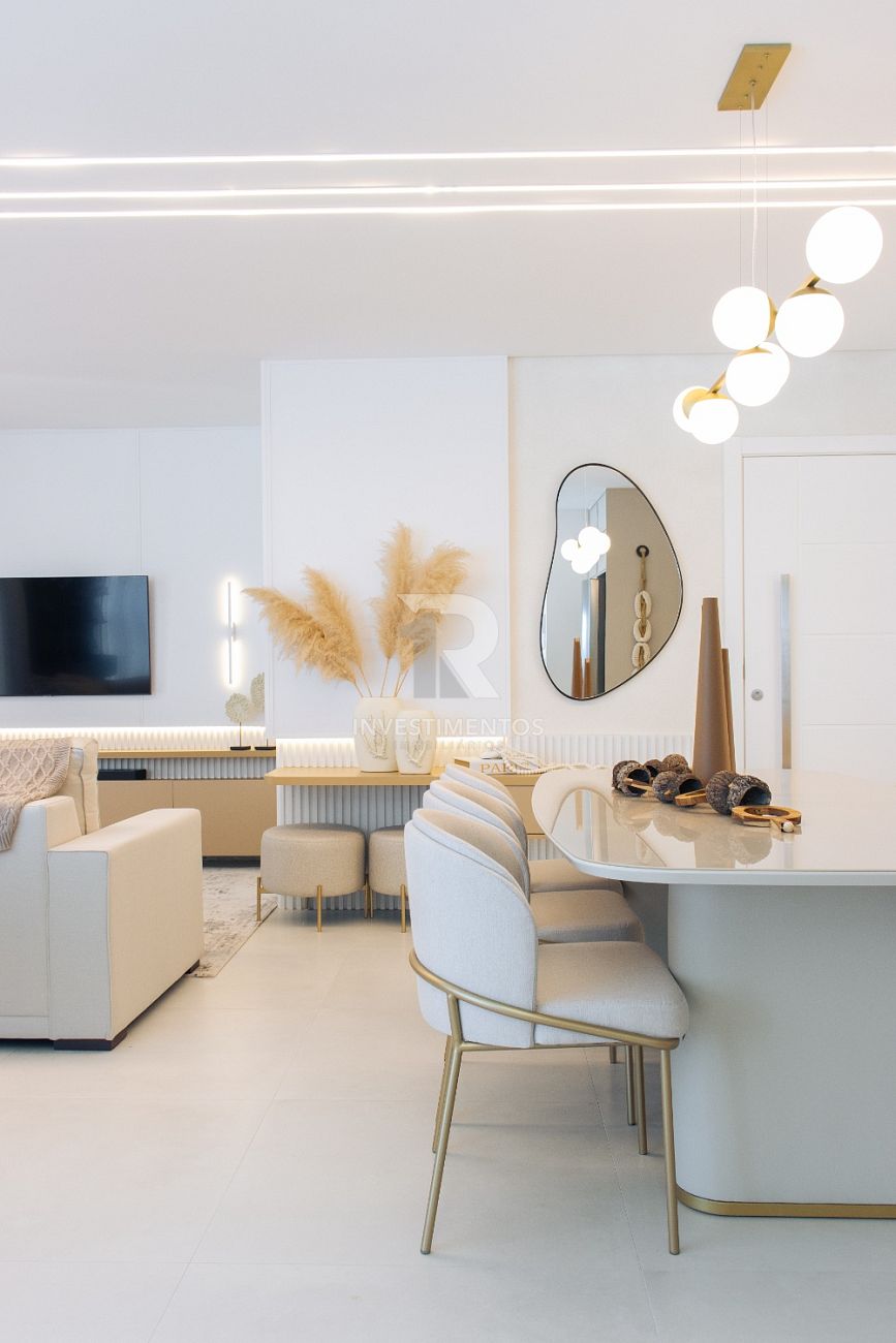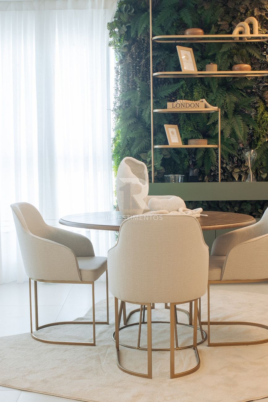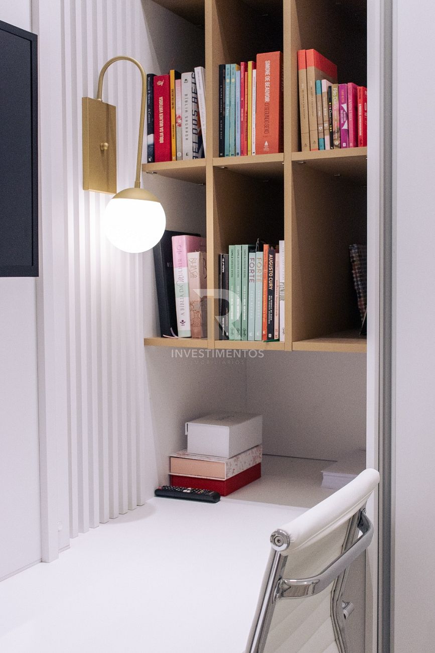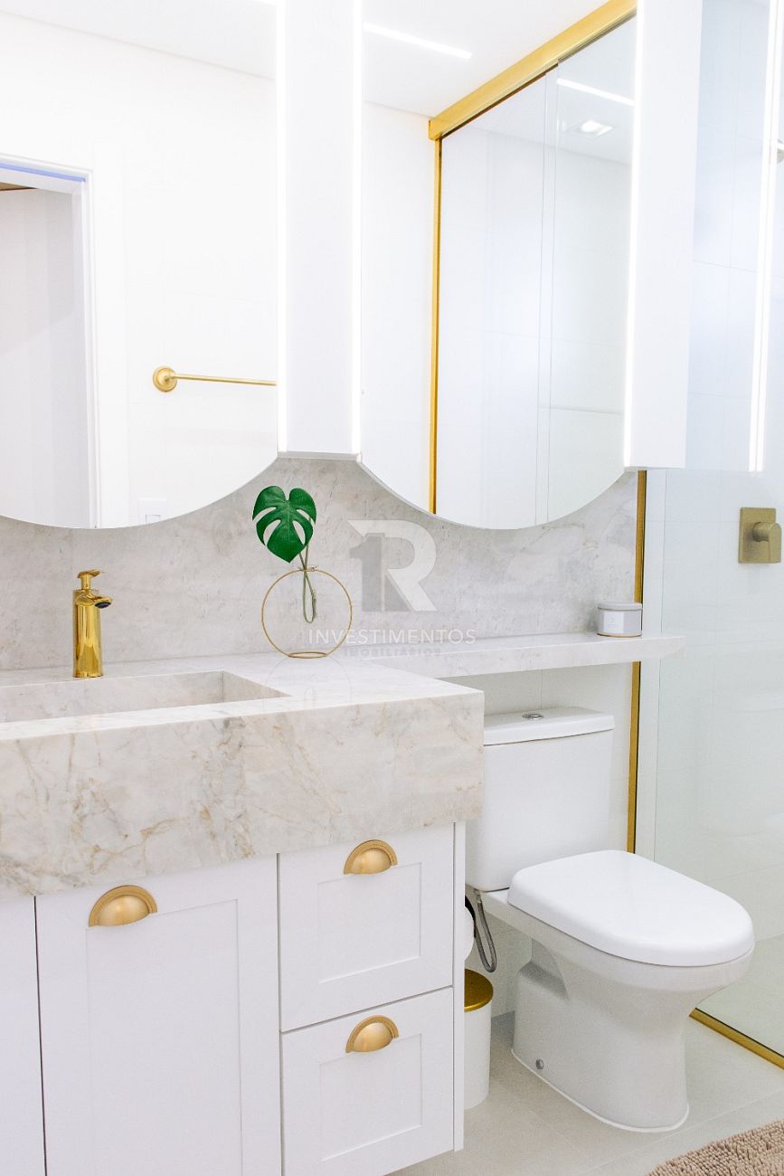 Com living integrado, lavabo, cozinha equipada, área de serviço e ampla sacada com churrasqueira a carvão. Acabamento de alto padrão com piso porcelanato, gesso, portas em laca branca, tubulação para água quente e ar-condicionado Split.