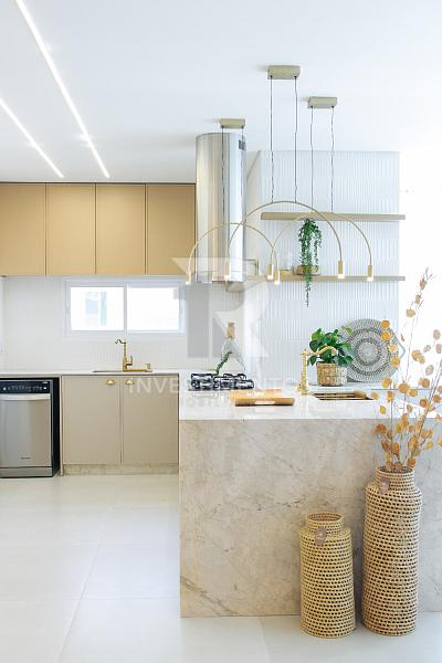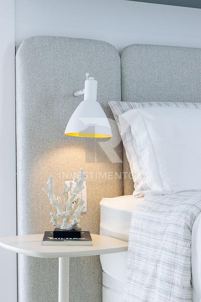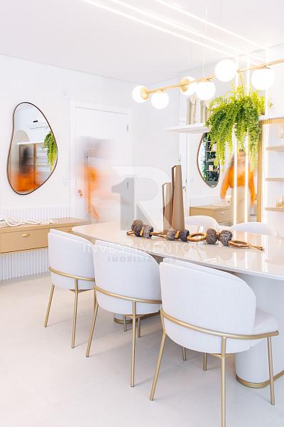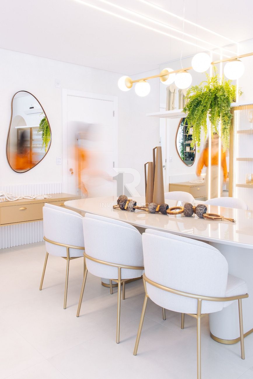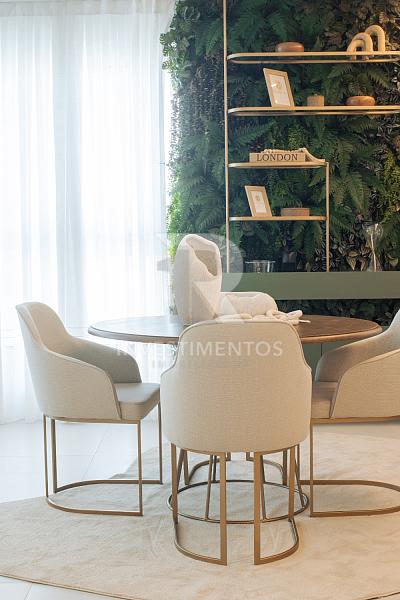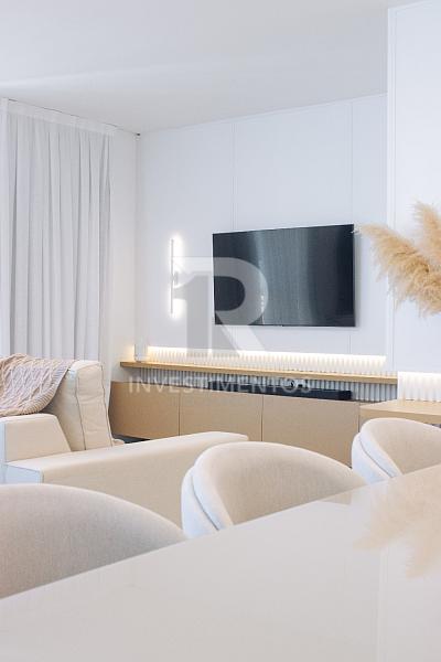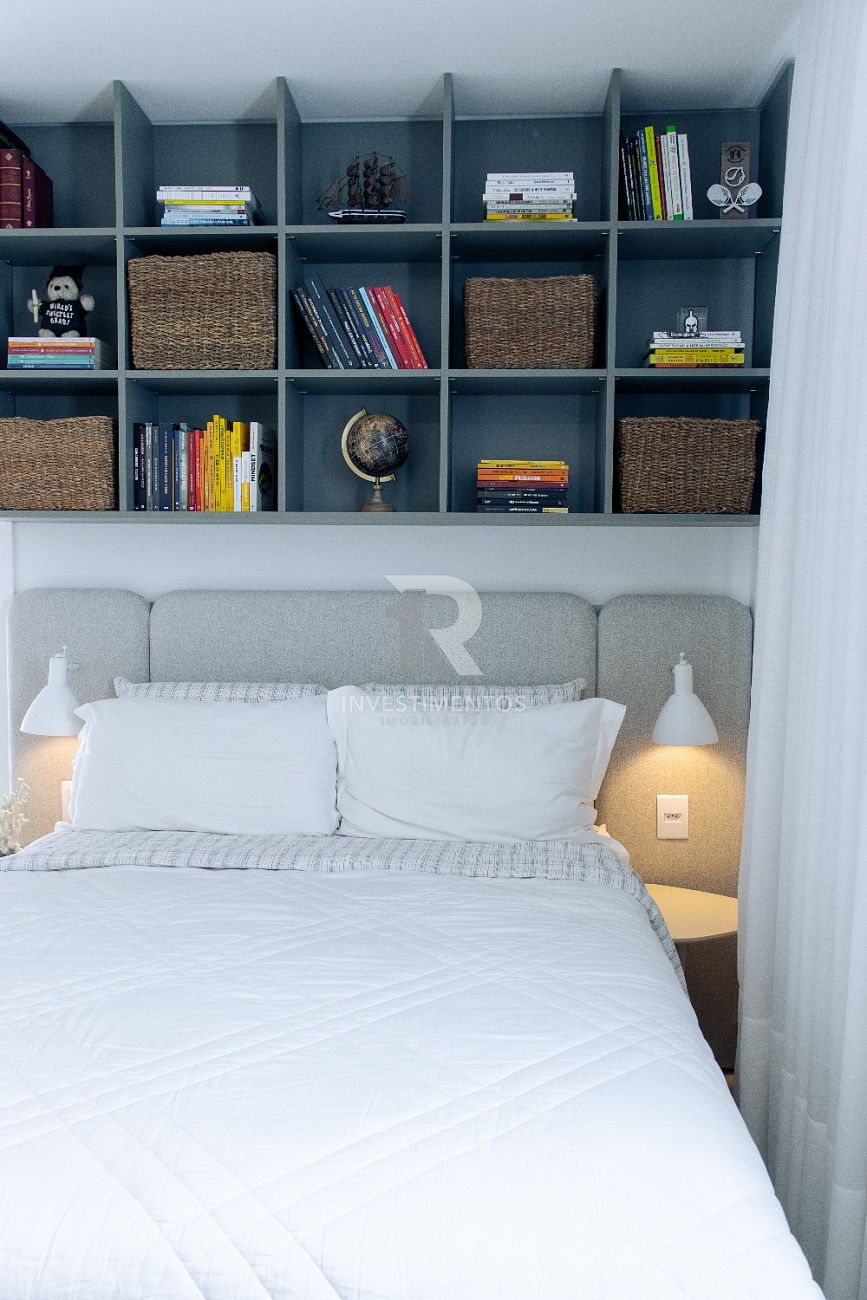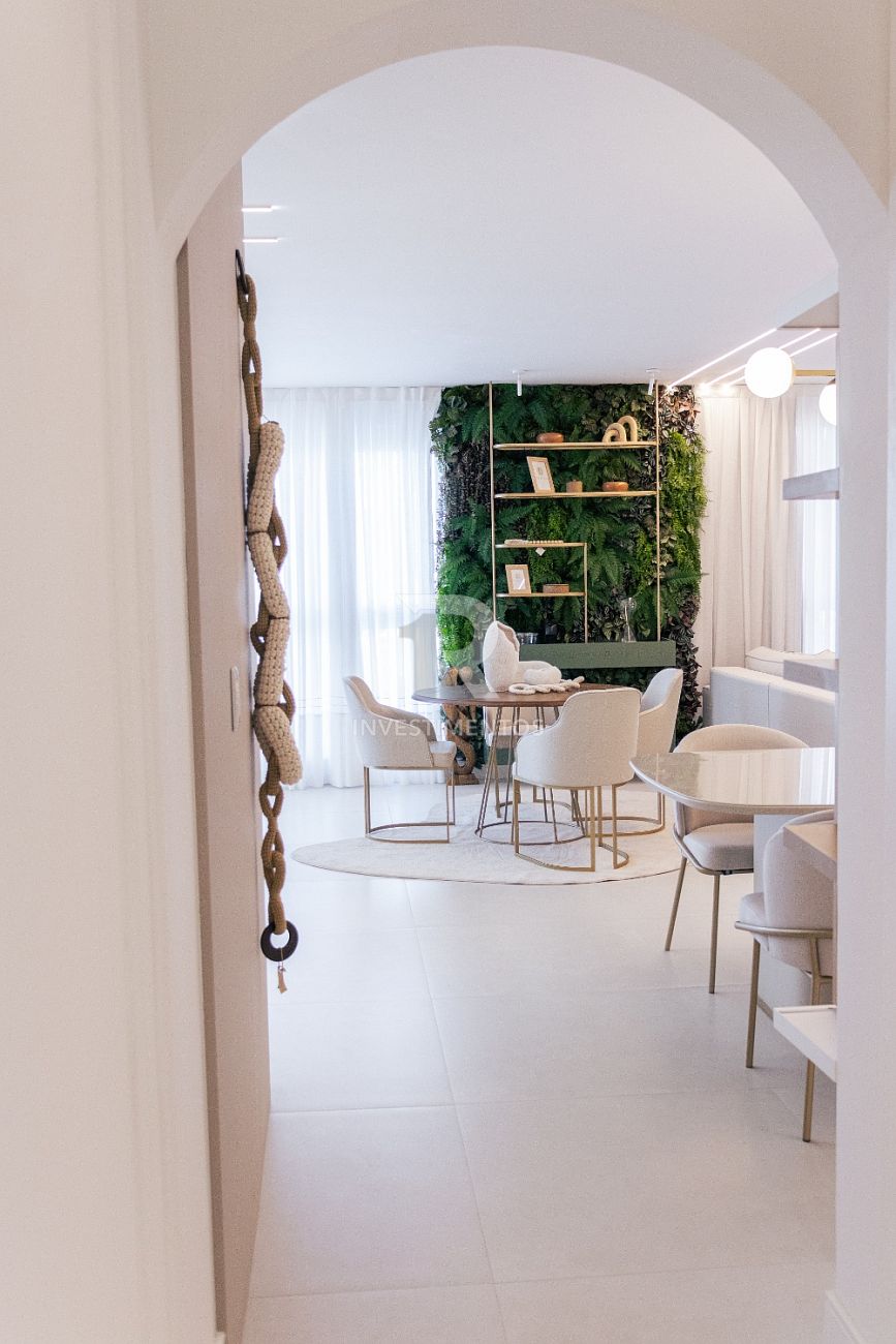Com living integrado, lavabo, cozinha equipada, área de serviço e ampla sacada com churrasqueira a carvão. Acabamento de alto padrão com piso porcelanato, gesso, portas em laca branca, tubulação para água quente e ar-condicionado Split.