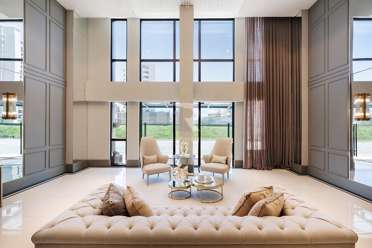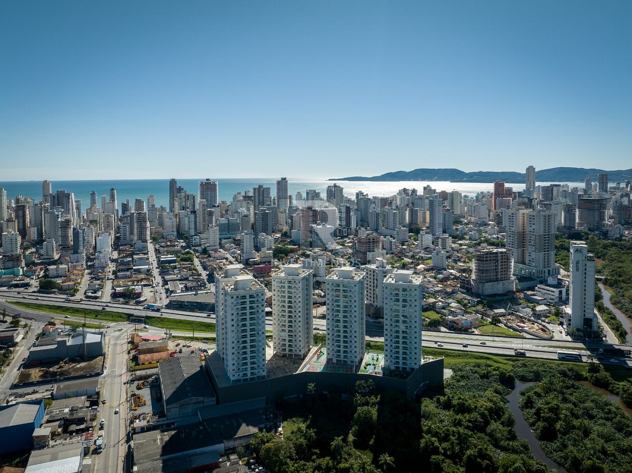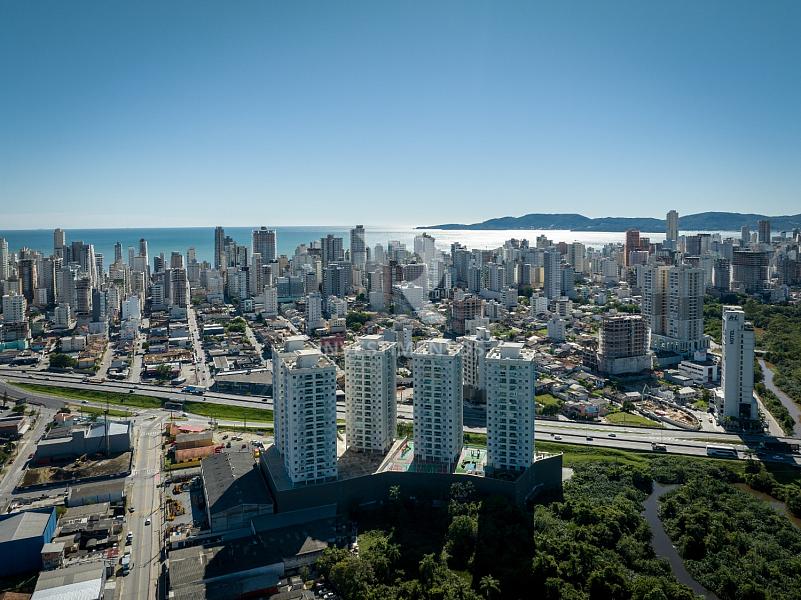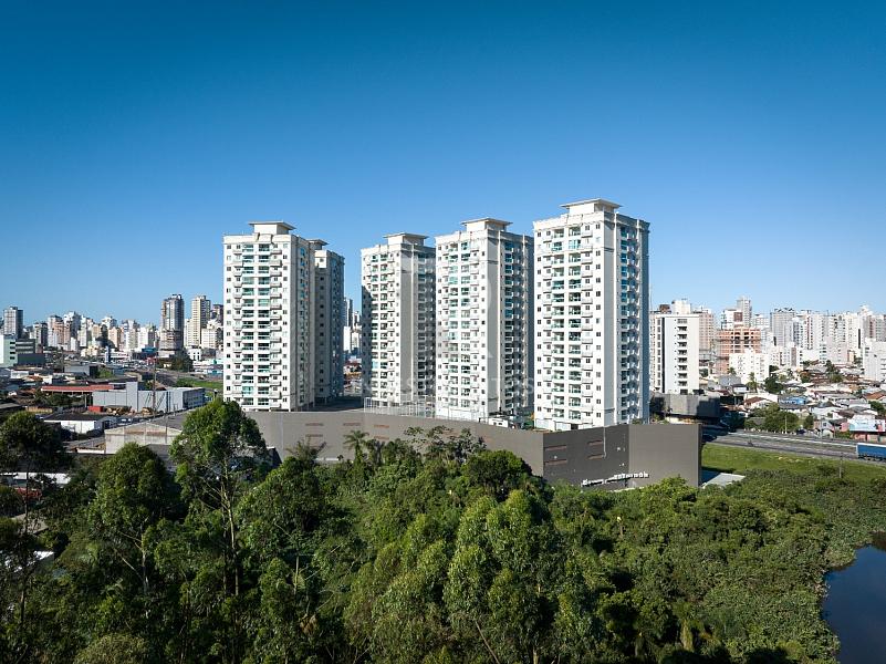 O empreendimento é composto por 5 torres de 18 pavimentos, com 6 apartamentos por andar, oferecendo estrutura moderna e completa. Entre os diferenciais, estão 4 salões de festas com churrasqueira, 2 quiosques com churrasqueira, espaço fitness, salas comerciais no térreo, pista para caminhada, quadra poliesportiva, além de 2 elevadores por torre e guarita com portaria 24 horas.