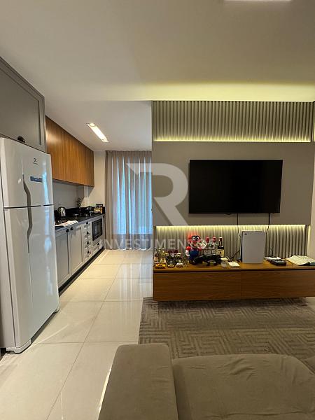 Este apartamento conta com 2 dormitórios, sendo 1 suíte, banheiro social, 1 vaga de garagem e está totalmente mobiliado. Os ambientes foram planejados para oferecer praticidade e conforto, com sala de estar integrada à cozinha e living, área de serviço, sacada com churrasqueira, além de piso em porcelanato, laminado nos dormitórios e detalhes em gesso.