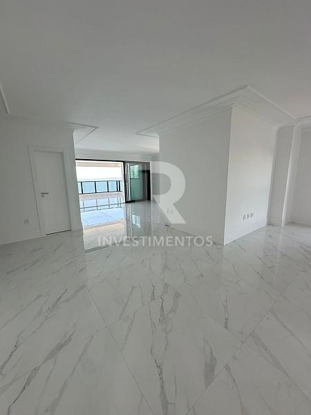 Luxuoso apartamento com 4 suítes, ampla área social, 3 vagas de garagem e uma vista para o mar permanente de tirar o fôlego.