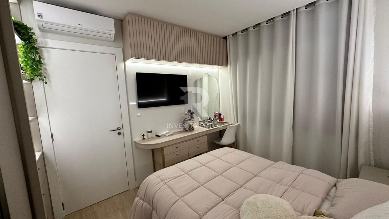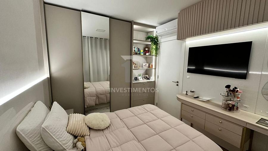 Apartamento com 02 dormitórios, sendo 01 suítes, amplo living, sala de estar, cozinha, banheiro social e sacada com churrasqueira — ideal para momentos especiais com a família e amigos. Conta com 02 vagas de garagem, ar-condicionado nos 3 quartos e está mobiliado (faltando mobiliar apenas 1 dormitório). Não possui eletrodomésticos.
