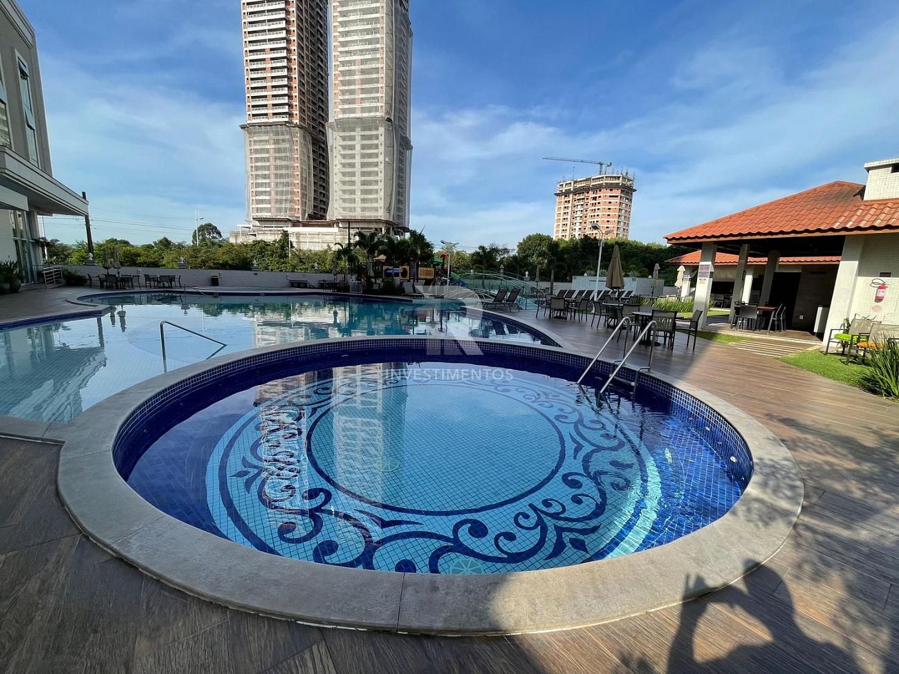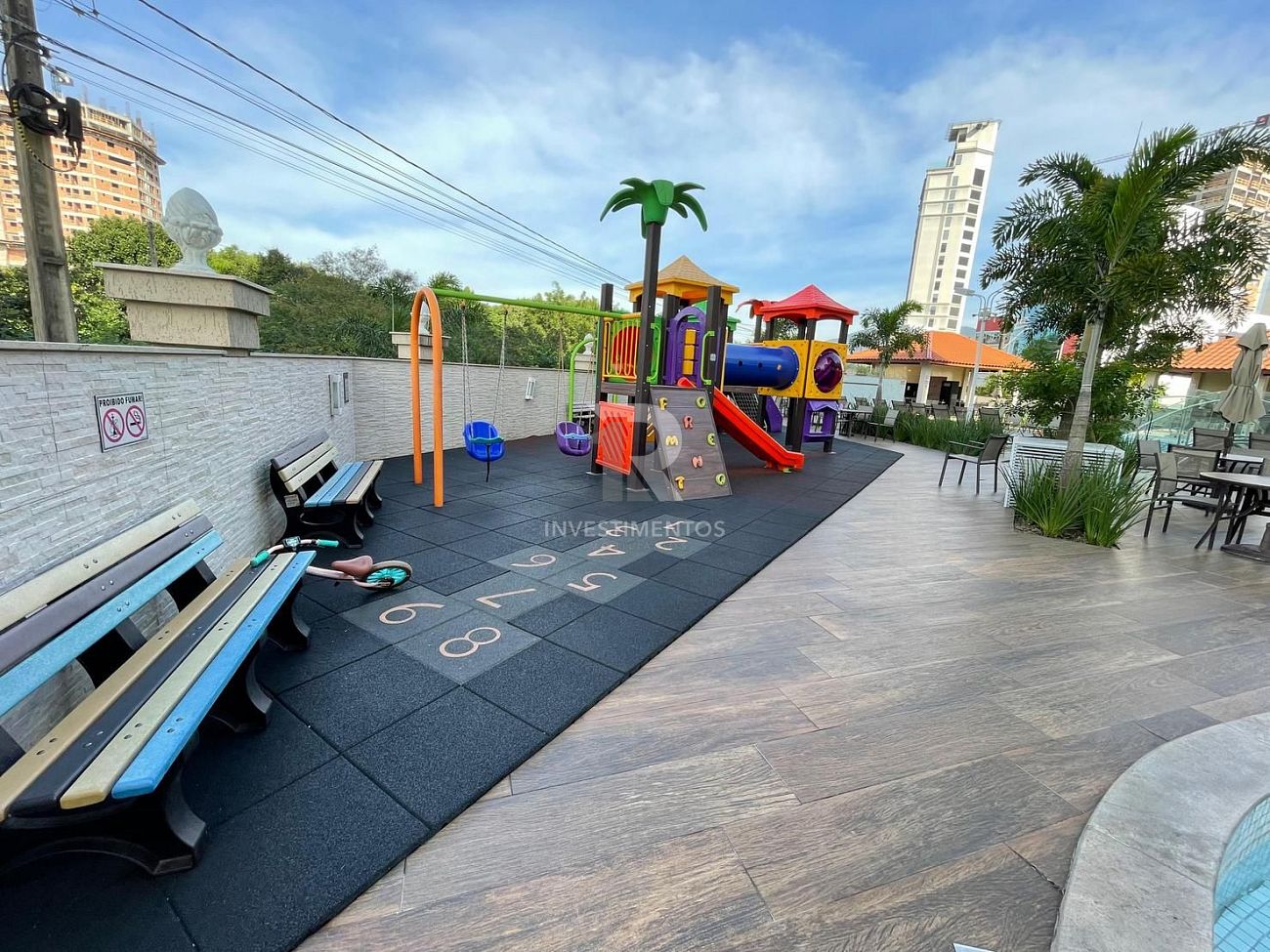 Área de lazer completa com piscina adulto e infantil, solarium, spa e sauna, salão de festas, espaço gourmet, churrasqueira, academia, playground, brinquedoteca, sala de jogos e amplas áreas ao ar livre.