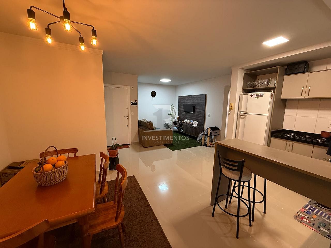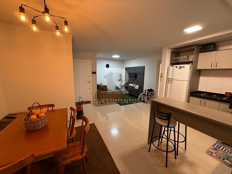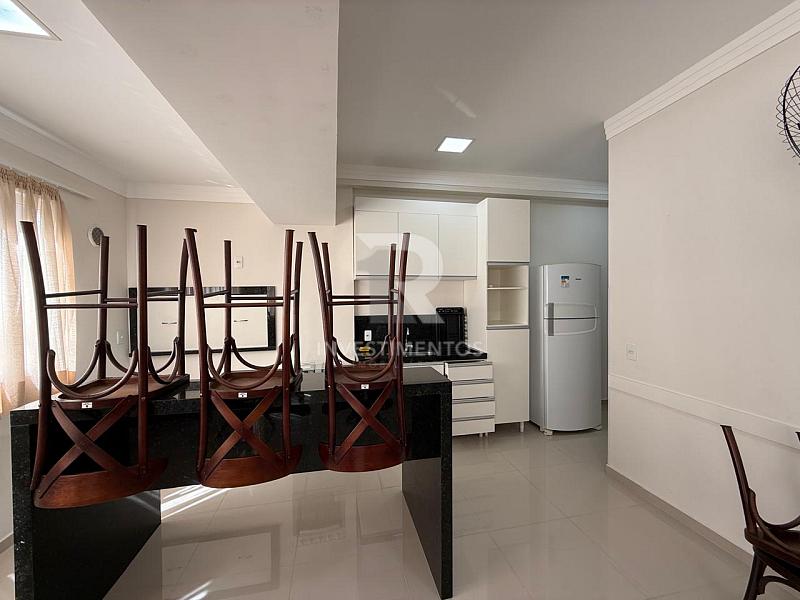 Apartamento com 2 dormitórios (sendo 1 suíte), living em dois ambientes, cozinha planejada, banheiro social e sacada com churrasqueira. Finamente mobiliado, com móveis sob medida, ar-condicionado, piso em porcelanato e acabamentos em gesso.